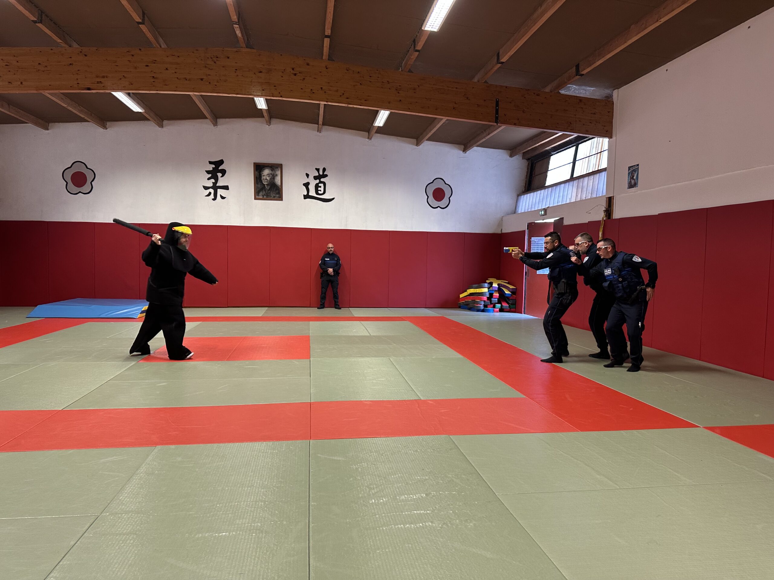 Pour les guider, deux formateurs : Lionel, chef de service à Saint-Étienne, et Virgile, brigadier chef principal à Saint-Éloi près de Nevers. Ces policiers municipaux ont tous les deux passé un monitorat pour la manipulation d’armes de tous types utilisées par la police municipale (létales ou non), dans le but d’enseigner le maniement des armes.