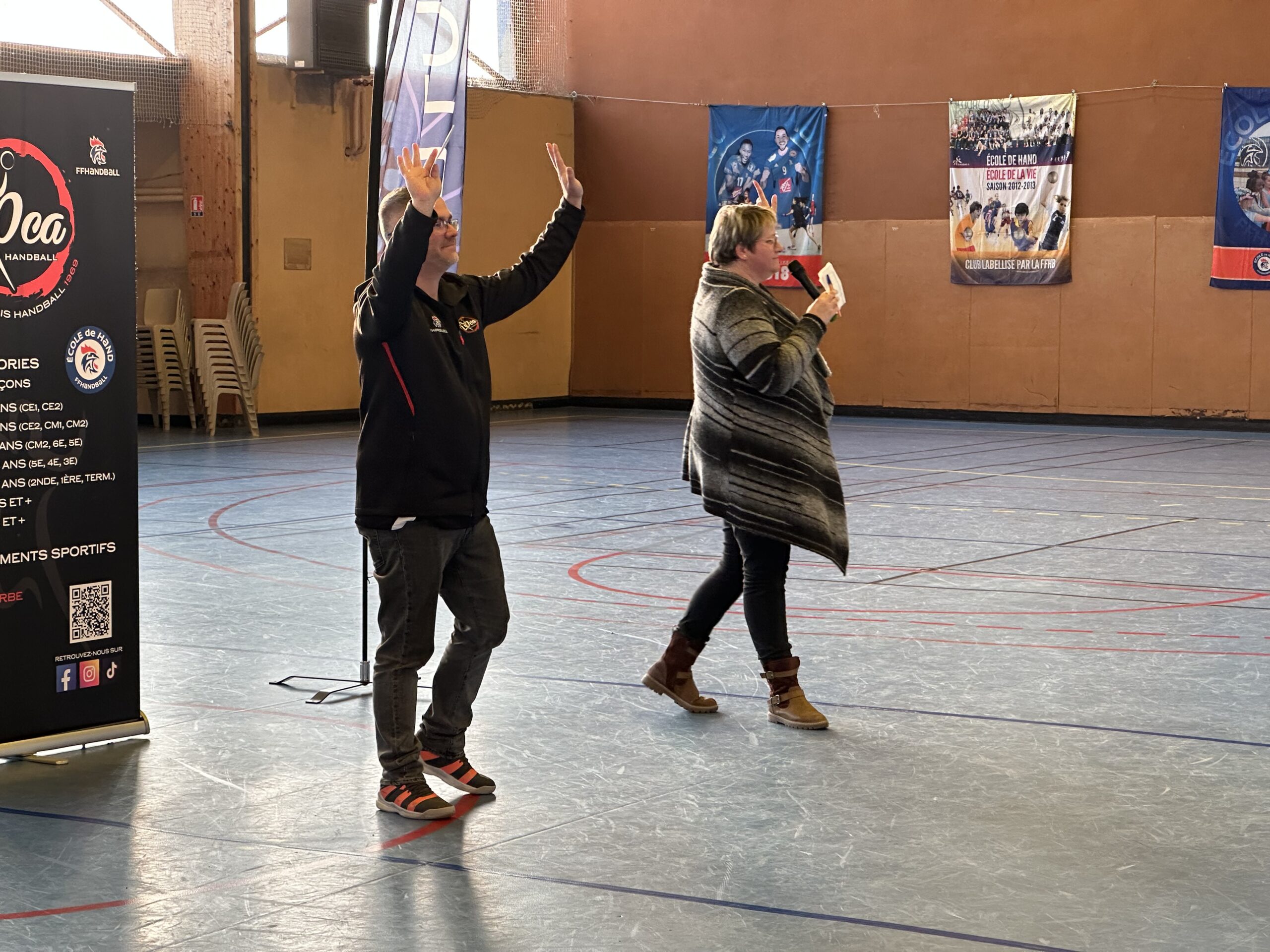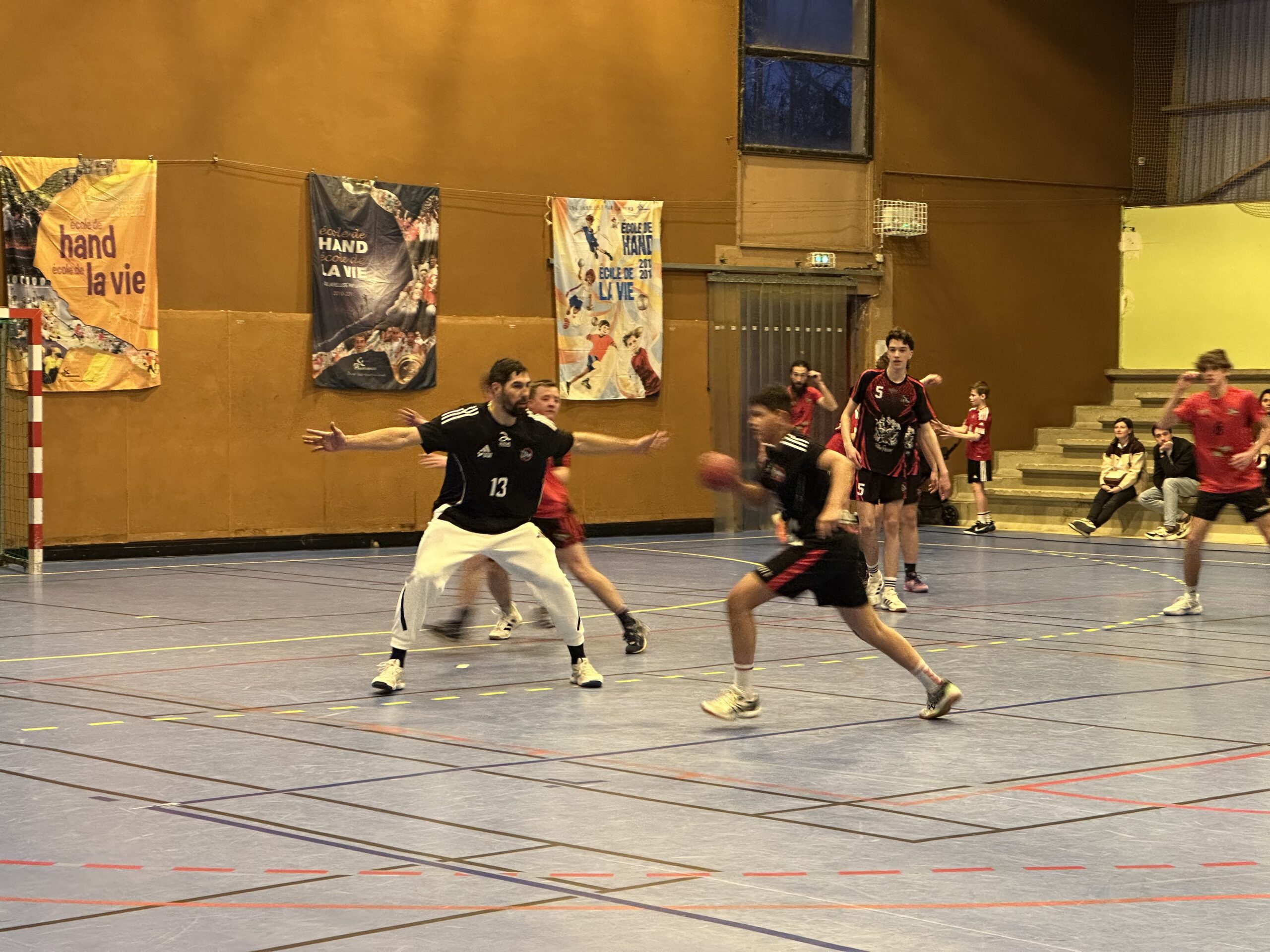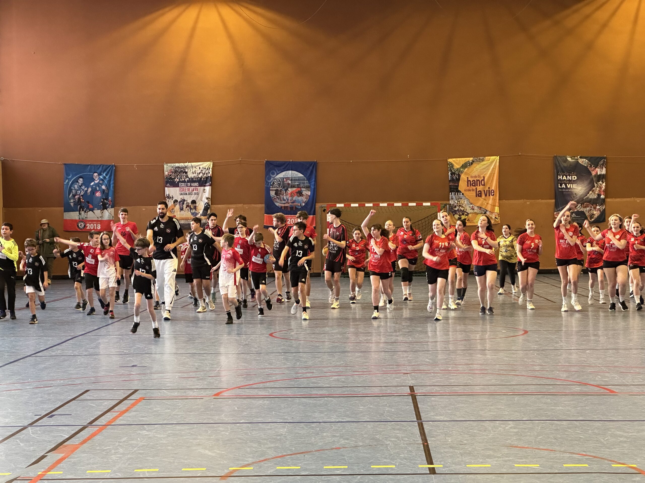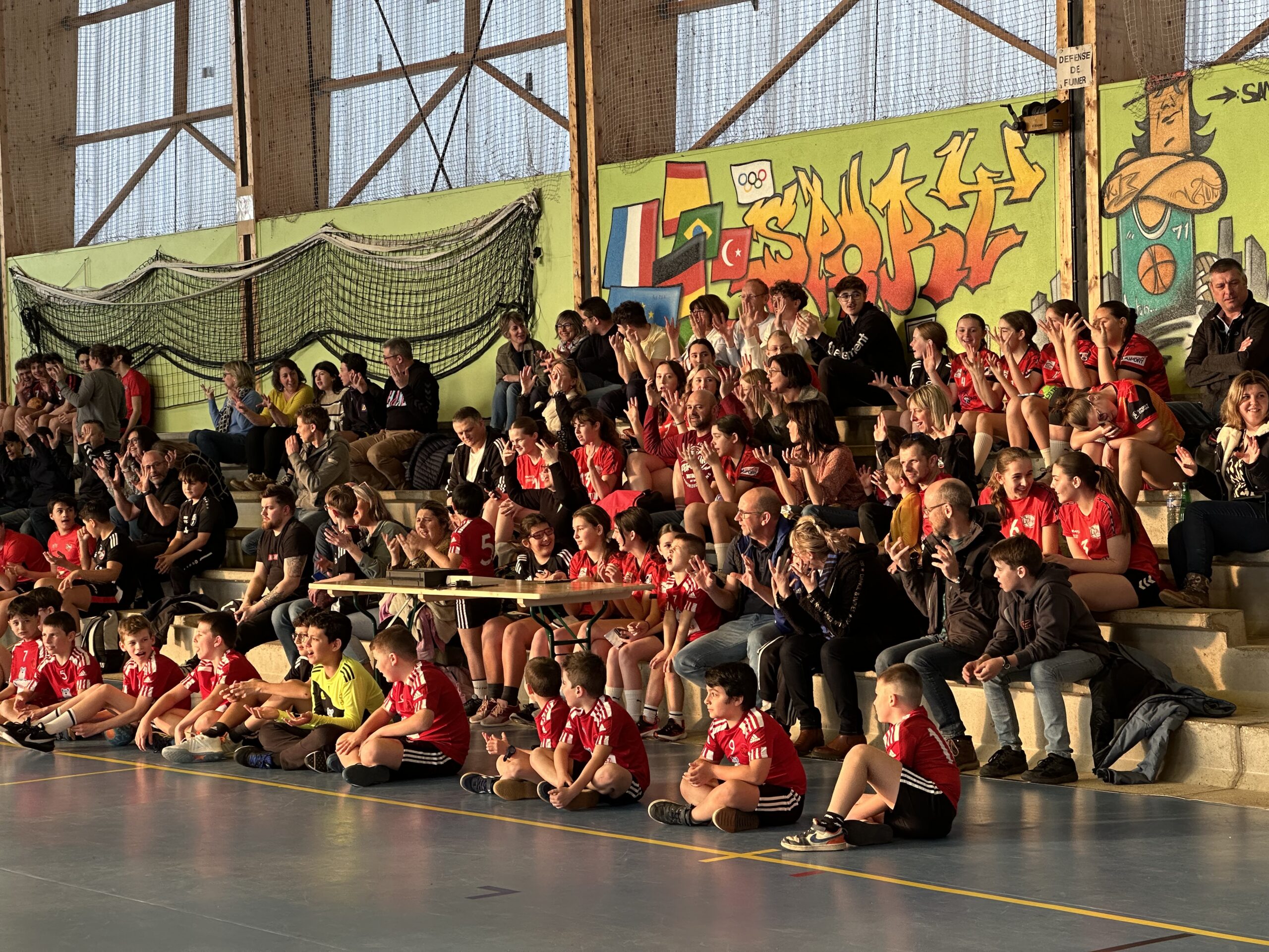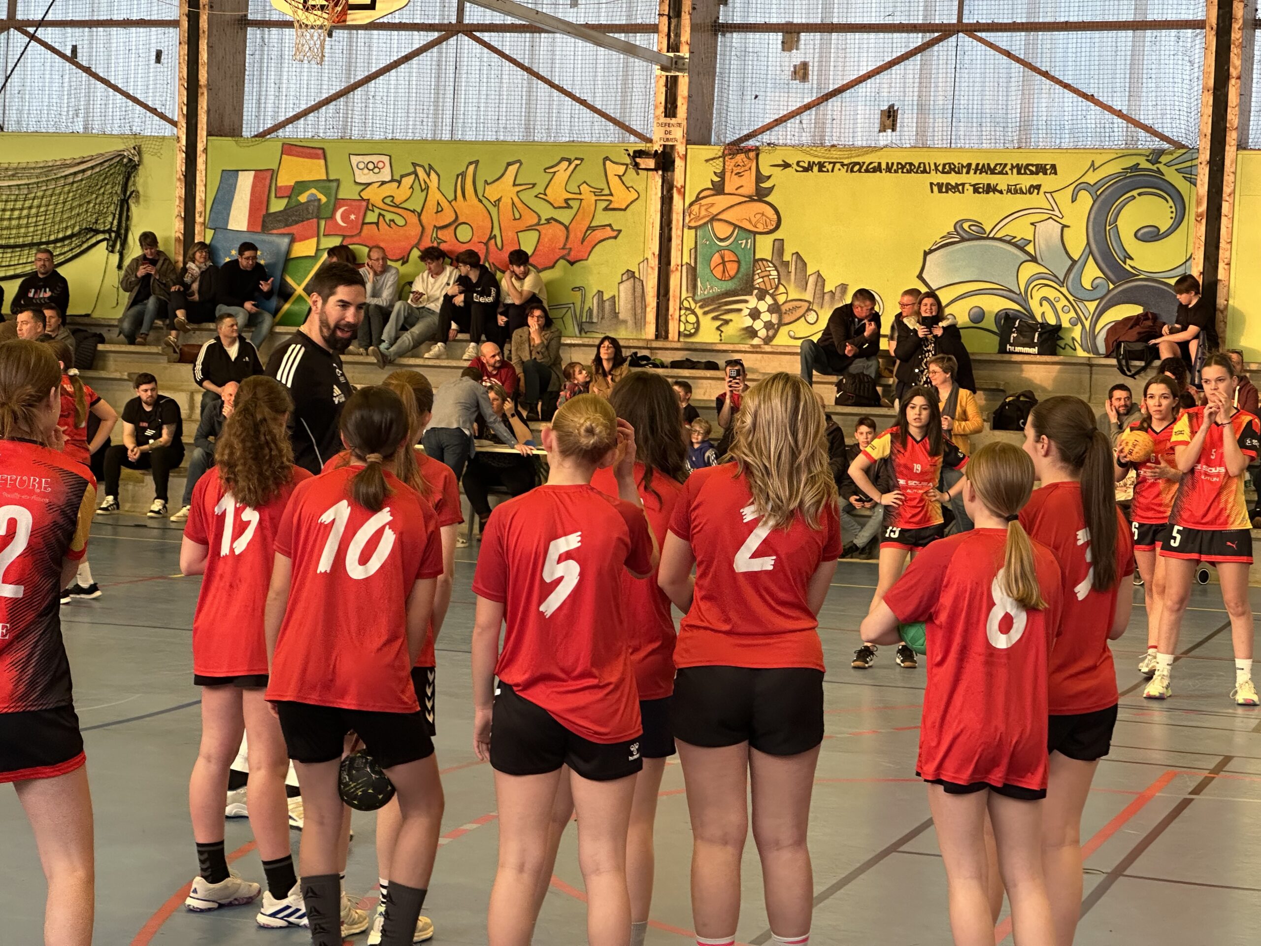 Pendant quelques heures, le sportif de haut niveau a partagé le terrain avec chaque équipe de l’OCA, d’abord pour un échauffement tous ensemble, puis pour de petits matchs, équipe par équipe. En-haut des gradins du gymnase Saint-Roch, Yas Munasinghe a également réalisé une superbe fresque représentant Nikola Karabatic, que l’athlète a signée.