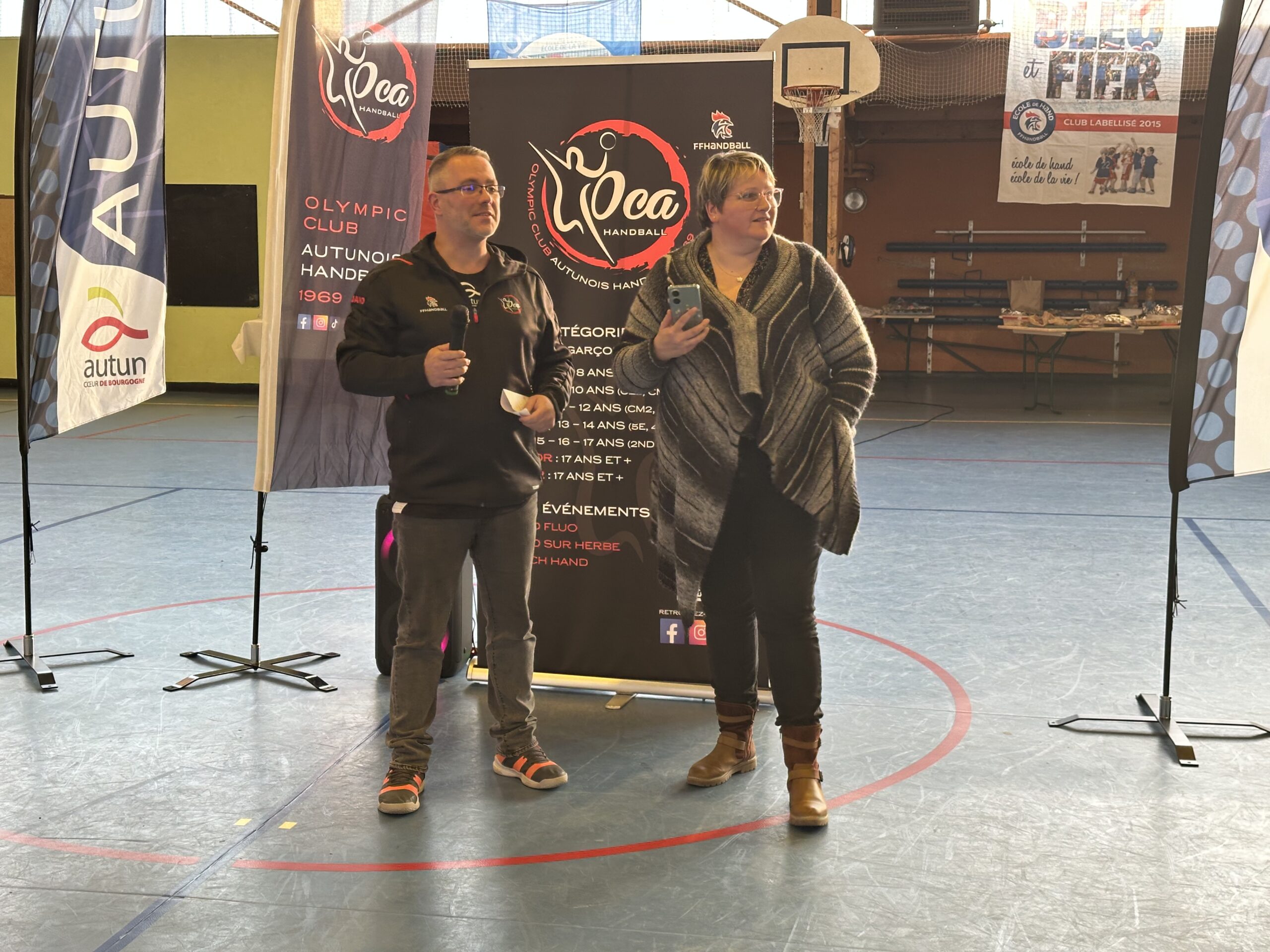 Et c’était l’effervescence au gymnase Saint-Roch : près de 200 jeunes licenciés de l’Olympic Club Autunois sont venus accueillir Nikola Karabatic avec quelques membres de leur famille. Vincent Chauvet, maire d’Autun, Cathy Nicolao-Verdenet, Éric Marchand, Patrick Cayeux, adjoints au maire, Céline Goudier-Poszwa, Jean-Louis Cormier et Alain Dichant, conseillers municipaux, étaient également tous présents pour rencontrer le handballeur professionnel. Vincent Chauvet a pris la parole quelques instants pour remettre à Nikola Karabatic la médaille de la ville.