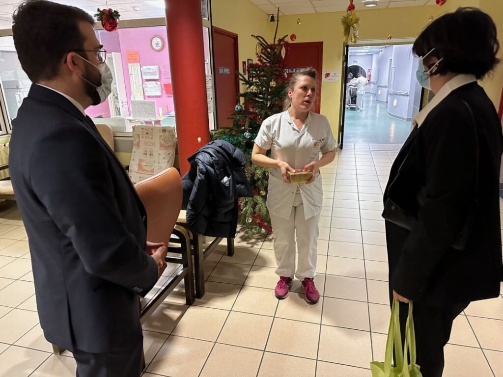 Après le site Parpas, les élus se sont rendus sur le site Latouche avec une visite à la Maison Saint-Charles, où ils ont pu échanger non seulement avec le personnel mais également les pensionnaires de l’EHPAD. Aux « Remparts », qui abrite le service de Soins de Suite et de Réadapatation et l’Unité de Soins Longue Durée, les personnels ont redit leur plaisir de voir les élus venir les saluer à l’occasion de cette dernière soirée de l’année.