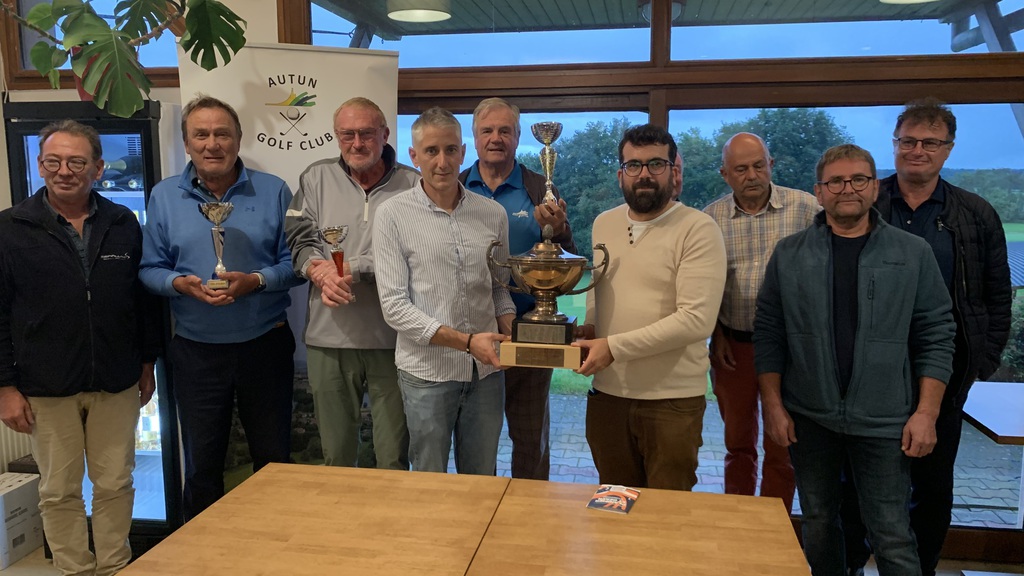 Rémi Fulgini, déjà vainqueur en 2023, a joué 74 (6 au-dessus du par) et remporte le trophée. Julie Petite (71 net), Guy Goussard (66 net), Eric Janot (38 pts stableford) et Claude Wirth (40 pts stableford), premiers de leur série en net, ont gagné une coupe ainsi que des green fees pour aller tester leurs swings dans les golfs des environs. Paul Garinot est l’heureux gagnant du tirage au sort : un jeton de practice par jour pendant un an !